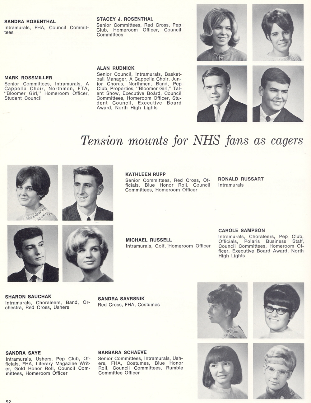 1967 Sheboygan North High School, Page 52: Sandra Rosenthal, Stacey J. Rosenthal, Mark Rossmiller, Alan Rudnick, Kathleen Rupp, Ronald Russart, Michael Russell, Carole Sampson, Sharon Suachak, Sandra Savrsnik, Sandra Saye, Barbara Schaeve.