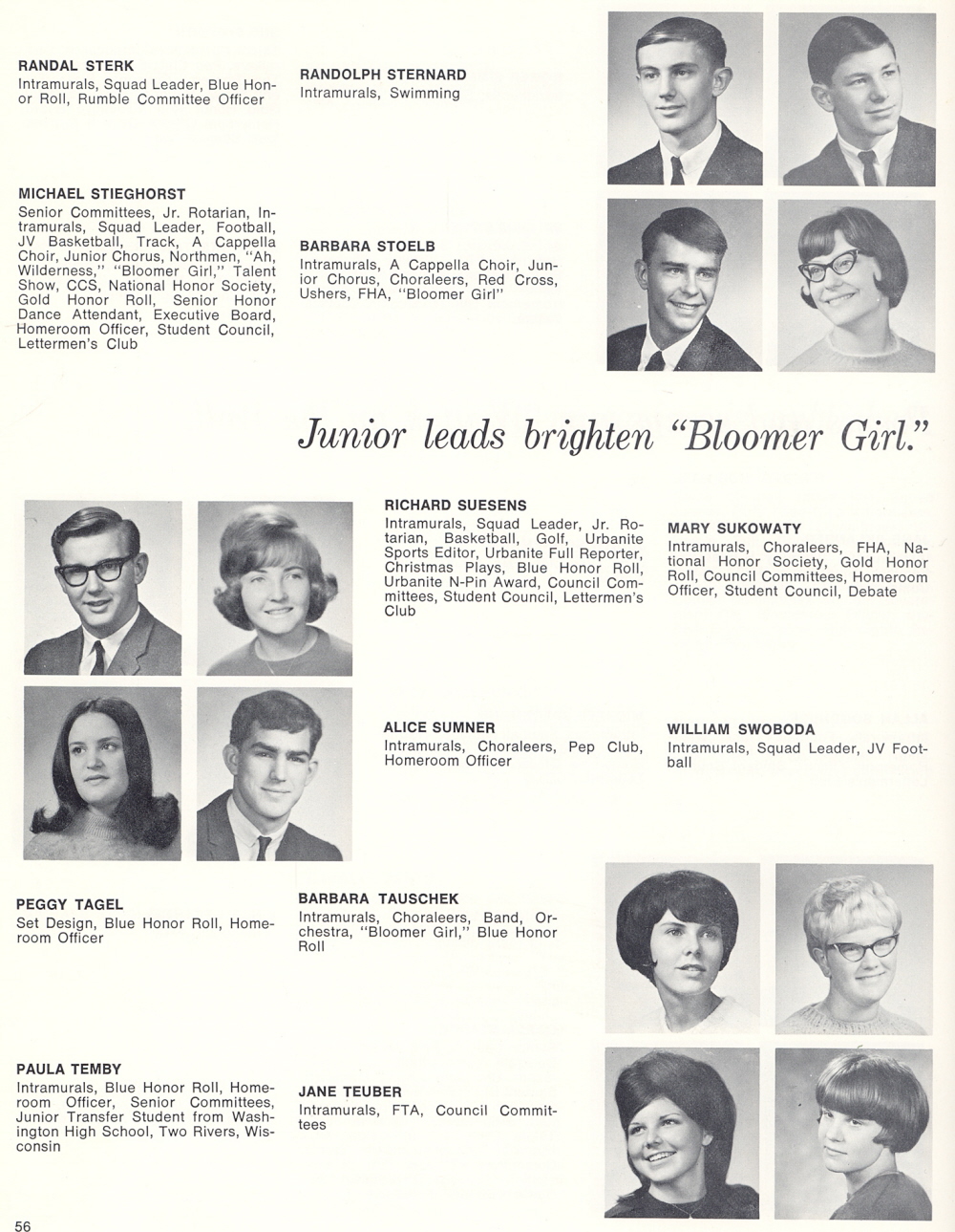 1967 Sheboygan North High School, Page 56: Randal Sterk, Randolph Sternard, Michael Stieghorst, Barbara Stoelb, Richard Suesens, Mary Sukowaty, Alice Sumner, William Swoboda, Peggy Tagel, Barbara Tauschek, Paula Temby, Jane Teuber.