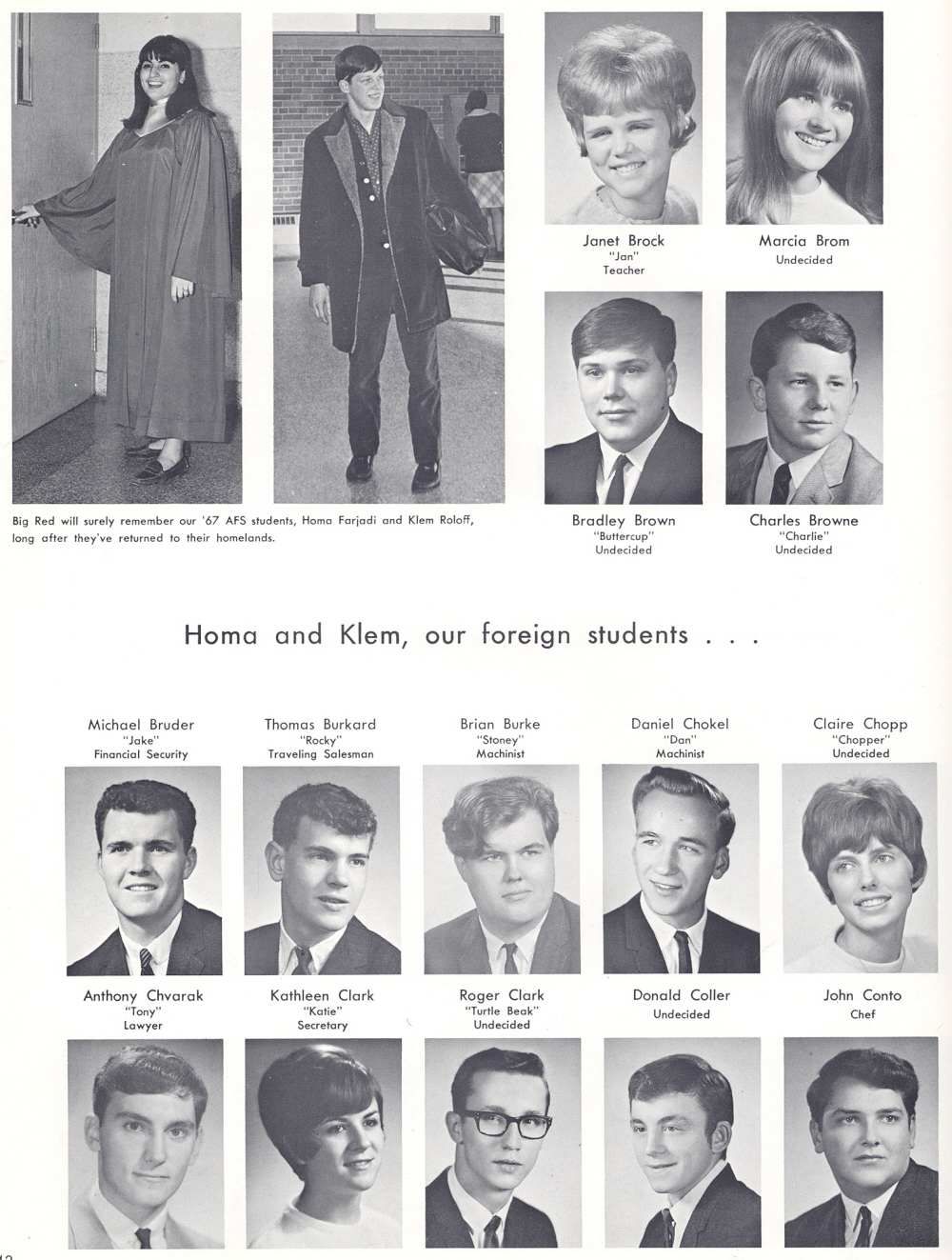 1967 Sheboygan South High School, Page 42: Janet Brock, Marcia Brom, Bradley Brown, Charles Browne, Michael Bruder, Thomas Burkard, Brian Burke, Daniel Chokel, Claire Chopp, Anthony Chvarak, Kathleen Clark, Roger Clark, Donald Coller, John Conto.