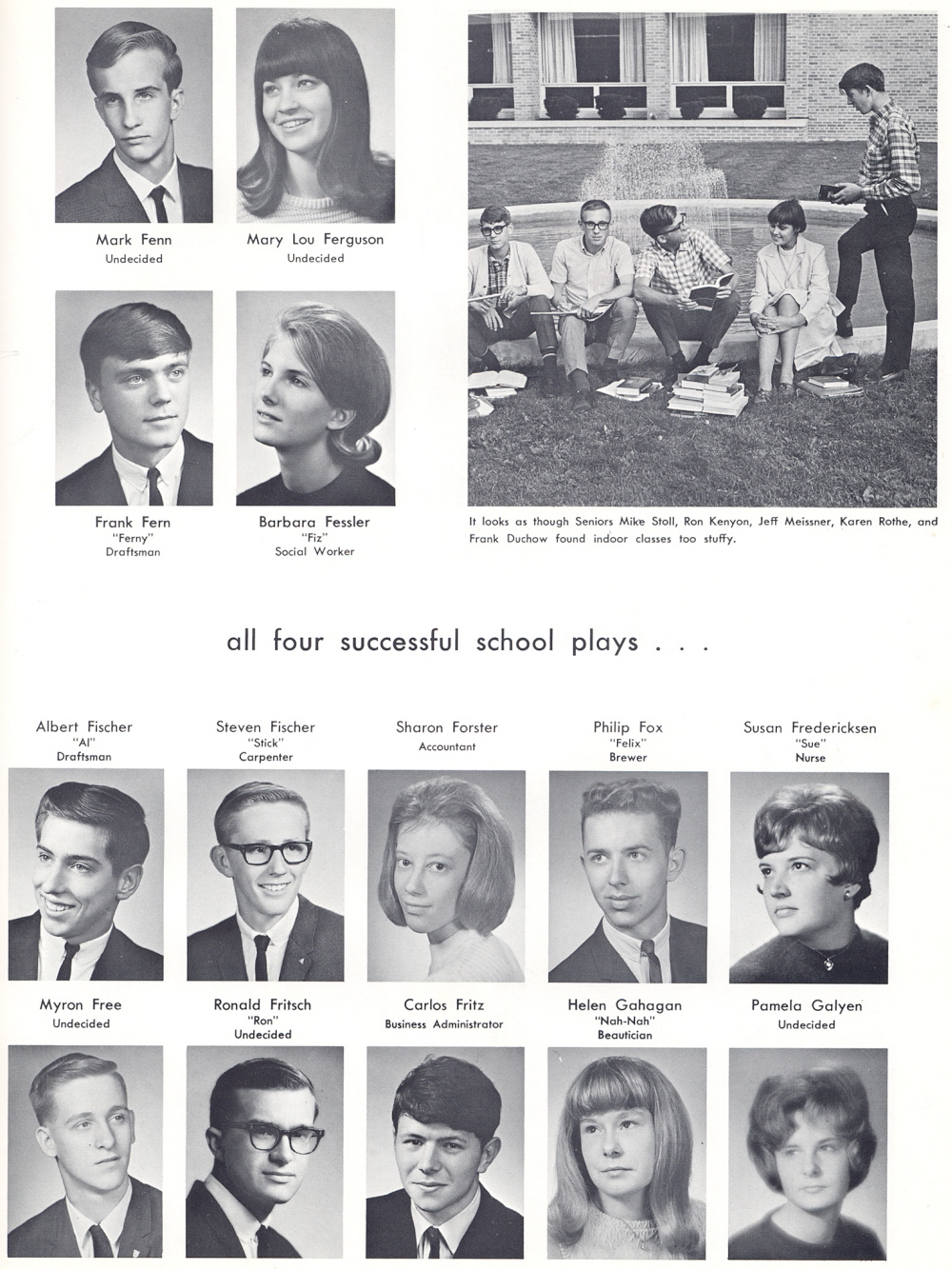 High School, Page 45: Mark Fenn, Mary Lou Ferguson, Frank Fern, Barbara Fessler, Albert Fischer, Steven Fischer, Sharon Forster, Philip Fox, Susan Fredericksen, Myron Free, Ronald Fritsch, Carlos Fritz, Helen Gahagan, Pamela Galyen.