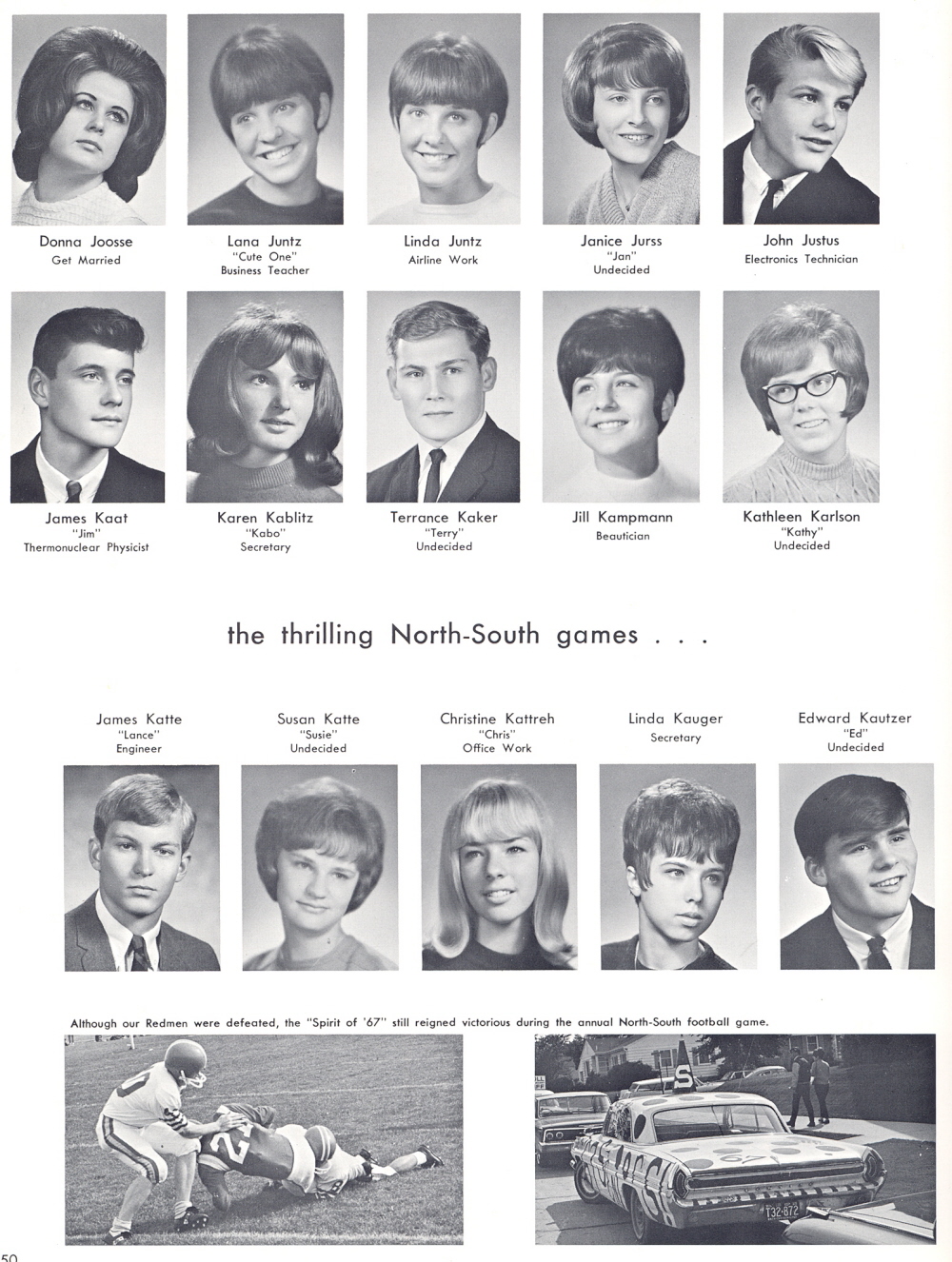 High School, Page 50: Donna Joosse, Lana Juntz, Linda Juntz, Janice Jurss, John Justus, James Kaat, Karen Kablitz, Terrance Kaker, Jill Kampmann, Kathleen Karlson, James Katte, Susan Katte, Christine Kattreh, Linda Kauger, Edward Kautzer.