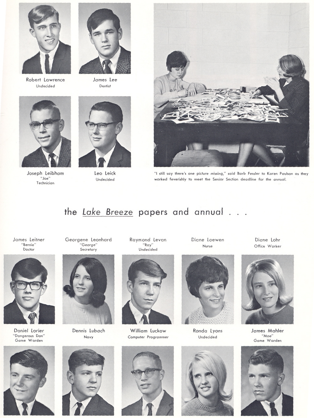 1967 Sheboygan South High School, Page 53: Robert Lawrence, James Lee, Joseph Leibham, Leo Leick, James Leitner, Georgene Leonhard, Raymond Levan, Diane Loewen, Diane Lohr, Daniel Lorier, Dennis Lubach, William Luckow, Ronda Lyons, James Mahler.