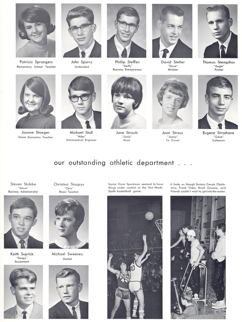 High School, Page 63: Patricia Sprangers, John Spurry, Phillip Steffen, David Stelter, Thomas Stempihar, Joanne Stoeger, Michael Stoll, Jane Straub, Joan Straus, Eugene Stroshane, Steven Stubbe, Christina Stuopys, Keith Suprick, Michael Sweeney.