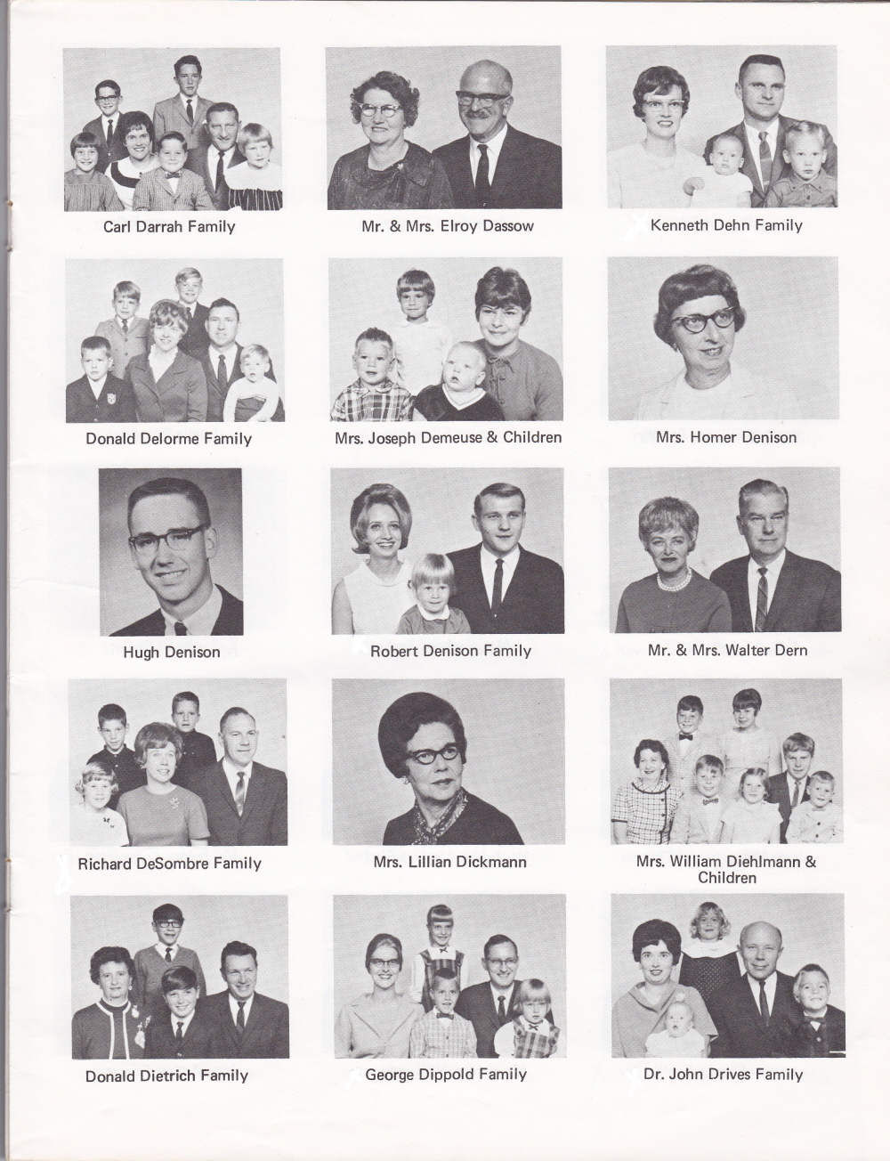1968 First United Lutheran Church of Sheboygan, Page 18: Carl Darrah Family, Mr. and Mrs. Elroy Dassow, Kenneth Dehn Family, Donald Delorme Family, Mrs. Joseph Demeuse and Children, Mrs. Homer Denison, Hugh Denison, Robert Denison Family, Mr. and Mrs. Walter Dern, Richard DeSombre Family, Mrs. Lillian Dickmann, Mrs. William Diehlmann and Children, Donald Dietrich Family, George Dippold Family, Dr. John Drives Family.