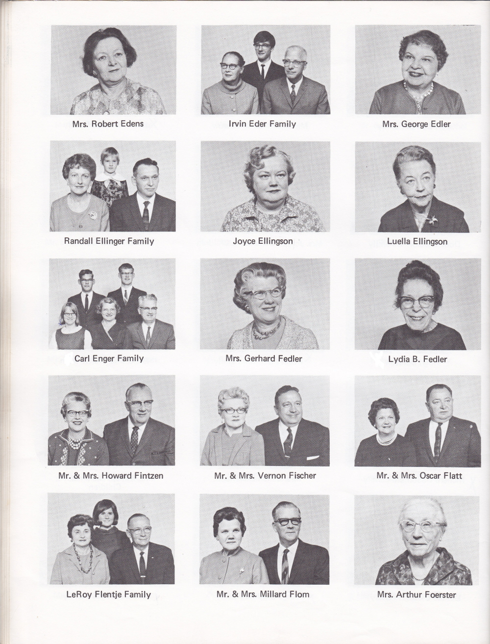 1968 First United Lutheran Church of Sheboygan, Page 19: Mrs. Robert Edens, Irvin Eder Family, Mrs. George Edler, Randall Ellinger Family, Joyce Ellingson, Luella Ellingson, Carl Enger Family, Mrs. Gerhard Fedler, Lydia B. Fedler, Mr. and Mrs. Howard Fintzen, Mr. and Mrs. Vernon Fischer, Mr. and Mrs. Oscar Flatt, LeRoy Flentje Family, Mr. and Mrs. Millard Flom, Mrs. Arthur Foerster.