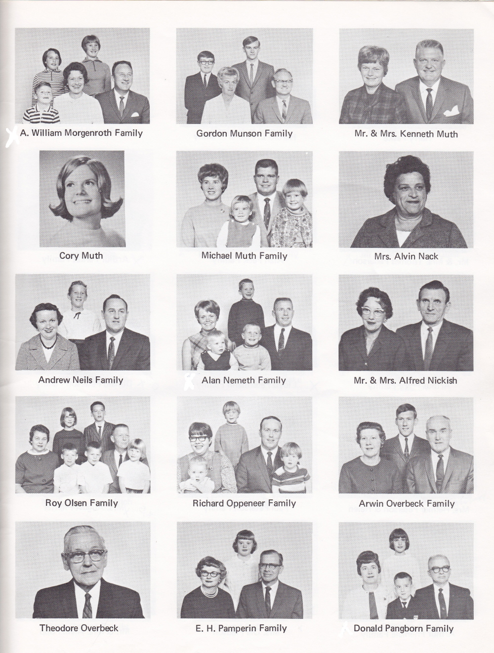 1968 First United Lutheran Church of Sheboygan, Page 30: A. William Morgenroth Family, Gordon Munson Family, Mr. and Mrs. Kenneth Muth, Cory Muth, Michael Muth Family, Mrs. Alvin Nack, Andrew Neils Famils, Alan Nemeth Family, Mr. and Mrs. Alfred Nickish, Roy Olsen Family, Richard Oppeneer Family, Arwin Overbeck Family, Theodore Overbeck, E. H. Pamperin Family, Donald Pangborn Family.