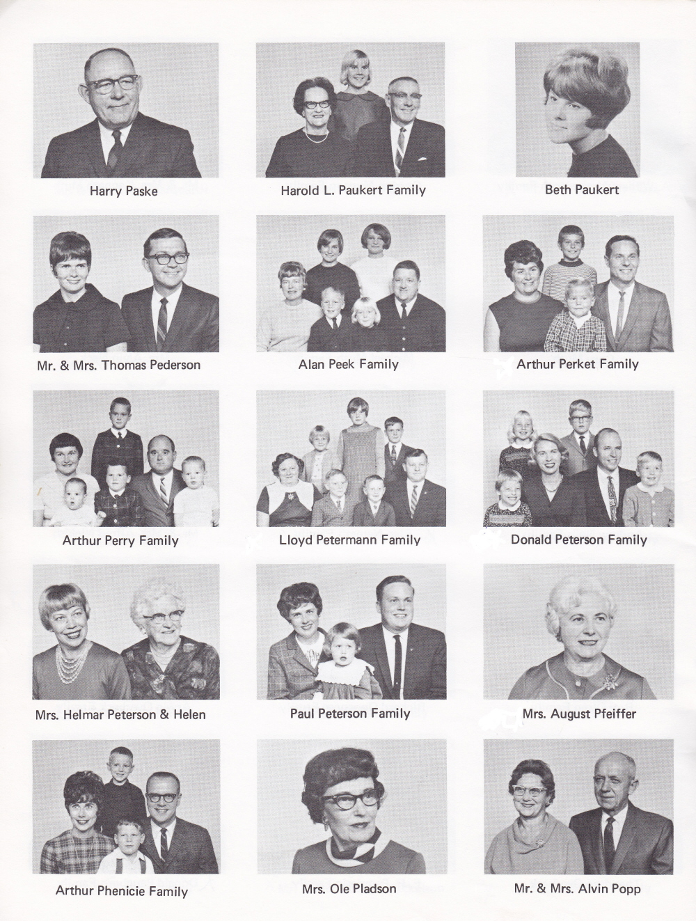 1968 First United Lutheran Church of Sheboygan, Page 31: Harry Paske, Harold L. Paukert Family, Beth Paukert, Mr. and Mrs. Thomas Pederson, Alan Peek Family, Arthur Perkert Family, Arthur Perry Family, Lloyd Petermann Family, Donald Peterson Family, Mrs. Helmar Peterson and Helen, Paul Peterson Family, Mrs. August Pfeiffer, Arthur Phenicie Family, Mrs. Ole Pladson, Mr. and Mrs. Alvin Popp.