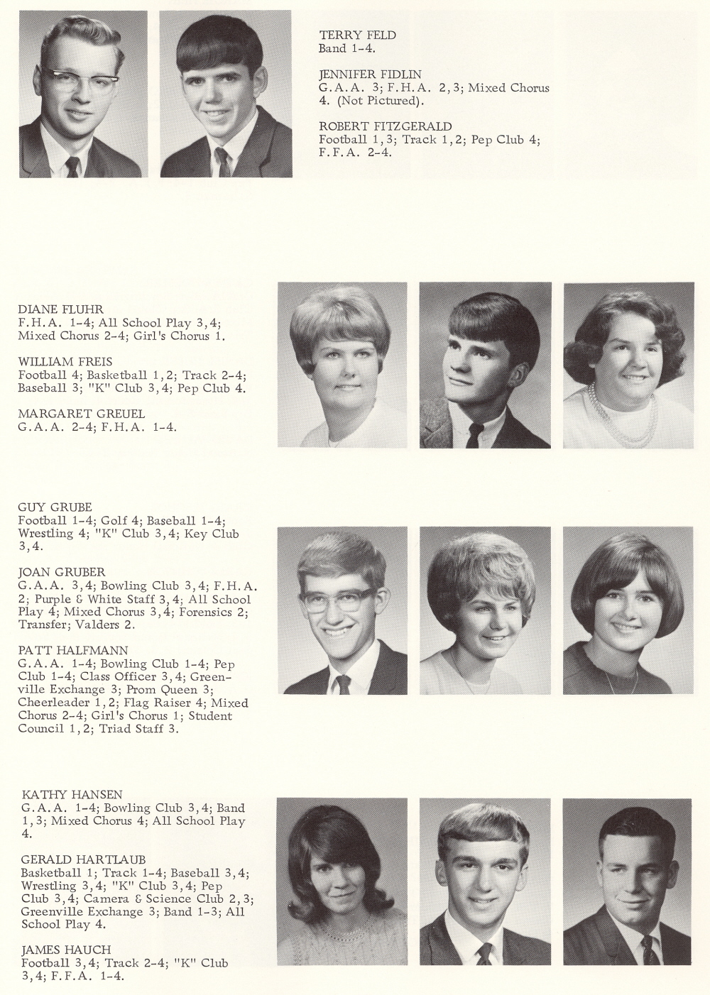 1968 Kiel High School, Page 23: Terry Feld, Jennifer Fidlin, Robert Fitzgerald, Diane Fluhr, William Fries, Margaret Greuel, Guy Grube, Joan Gruber, Patt Halfmann, Kathy Hansen, Gerald Hartlaub, James Hauch.