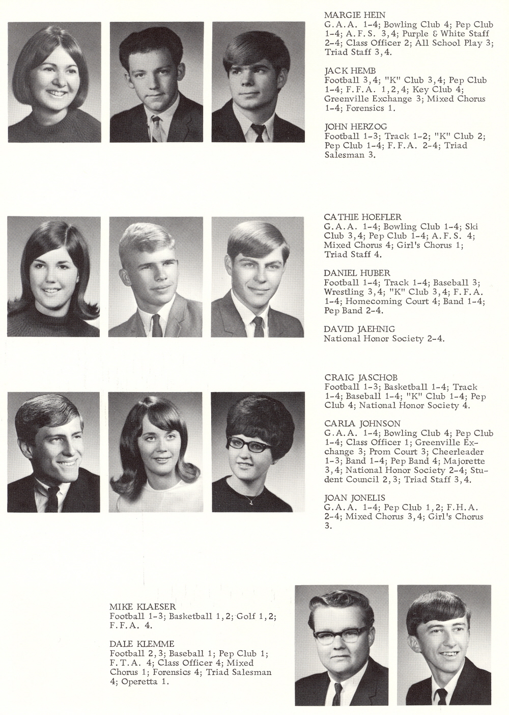 1968 Kiel High School, Page 24: Margie Hein, Jack Hemb, John Herzog, Cathie Hoefler, Daniel Huber, David Jaehnig, Craig Jaschob, Carla Johnson, Joan Jonelis, Mike Klaeser, Dale Klemme.