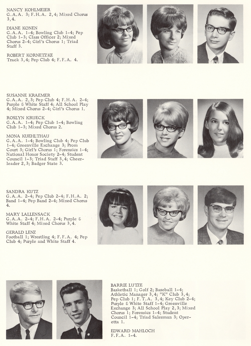 1968 Kiel High School, Page 25: Nancy Kohlmeier, Diane Konen, Robert Kornetzke, Susanne Kraemer, Roslyn Krueck, Mona Kuehlthau, Sandra Kutz, Mary Lallensack, Gerald Lenz, Barry Lutze, Edward Mahloch.