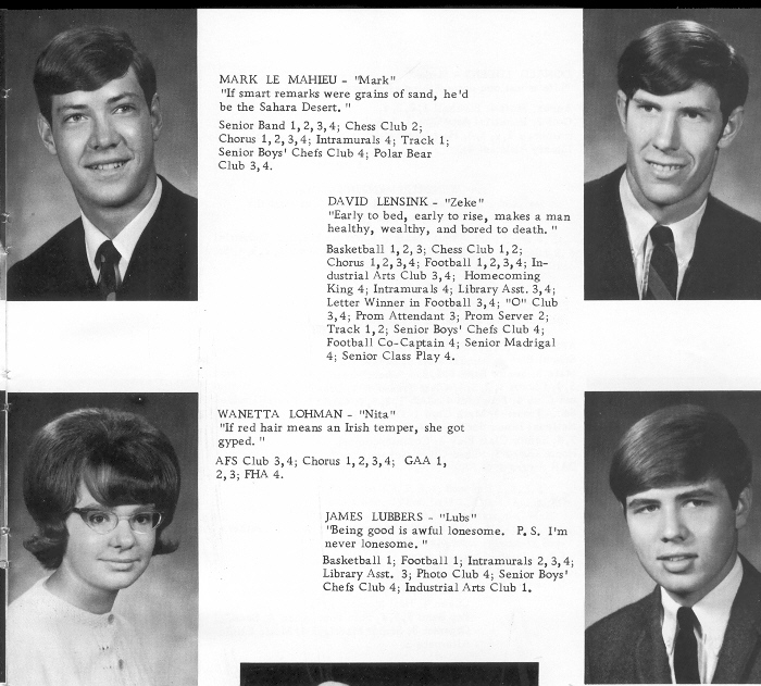 1968 Oostburg High School, Page 13: Mark Le Mahieu, David Lensink, Wanetta Lohman, James Lubbers.