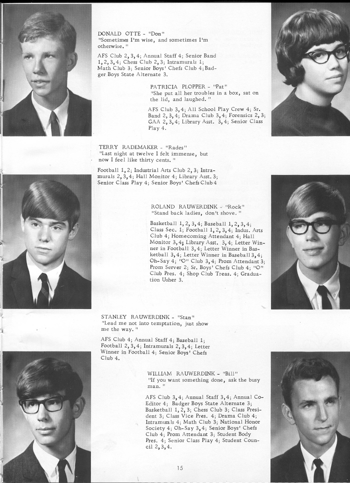 1968 Oostburg High School, Page 15: Donald Otte, Patricia Plopper, Terry Rademaker, Roland Rauwerdink, Stanley Rauwerdink, William Rauwerdink.
