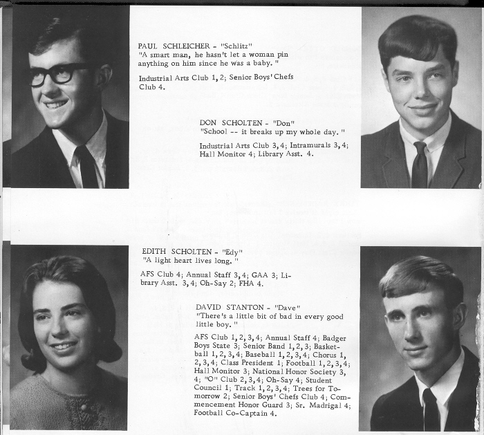 1968 Oostburg High School, Page 16: Paul Schleicher, Don Scholten, Edith Scholten, David Stanton.