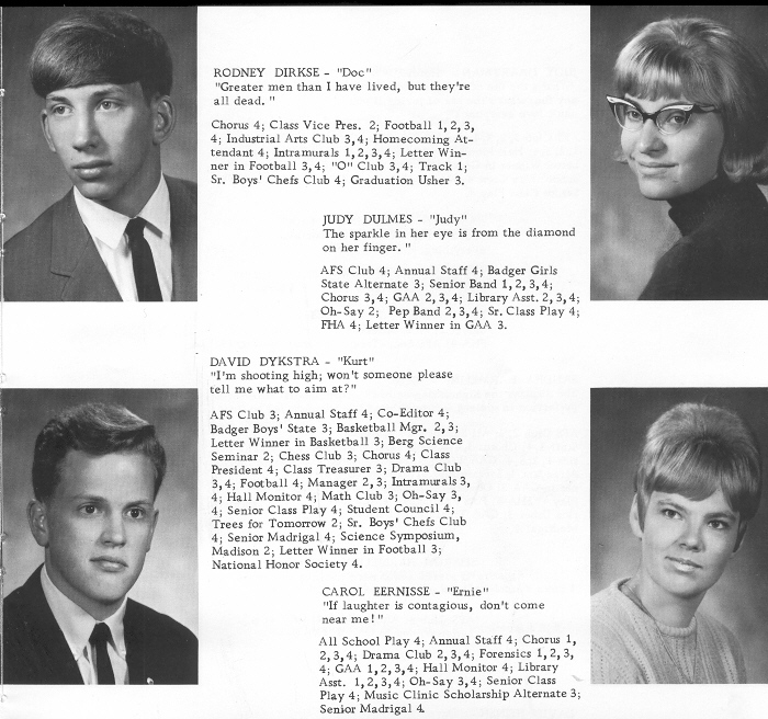 1968 Oostburg High School, Page 9: Rodney Dirkse, Judy Dulmes, David Dykstra, Carol Eernisse.