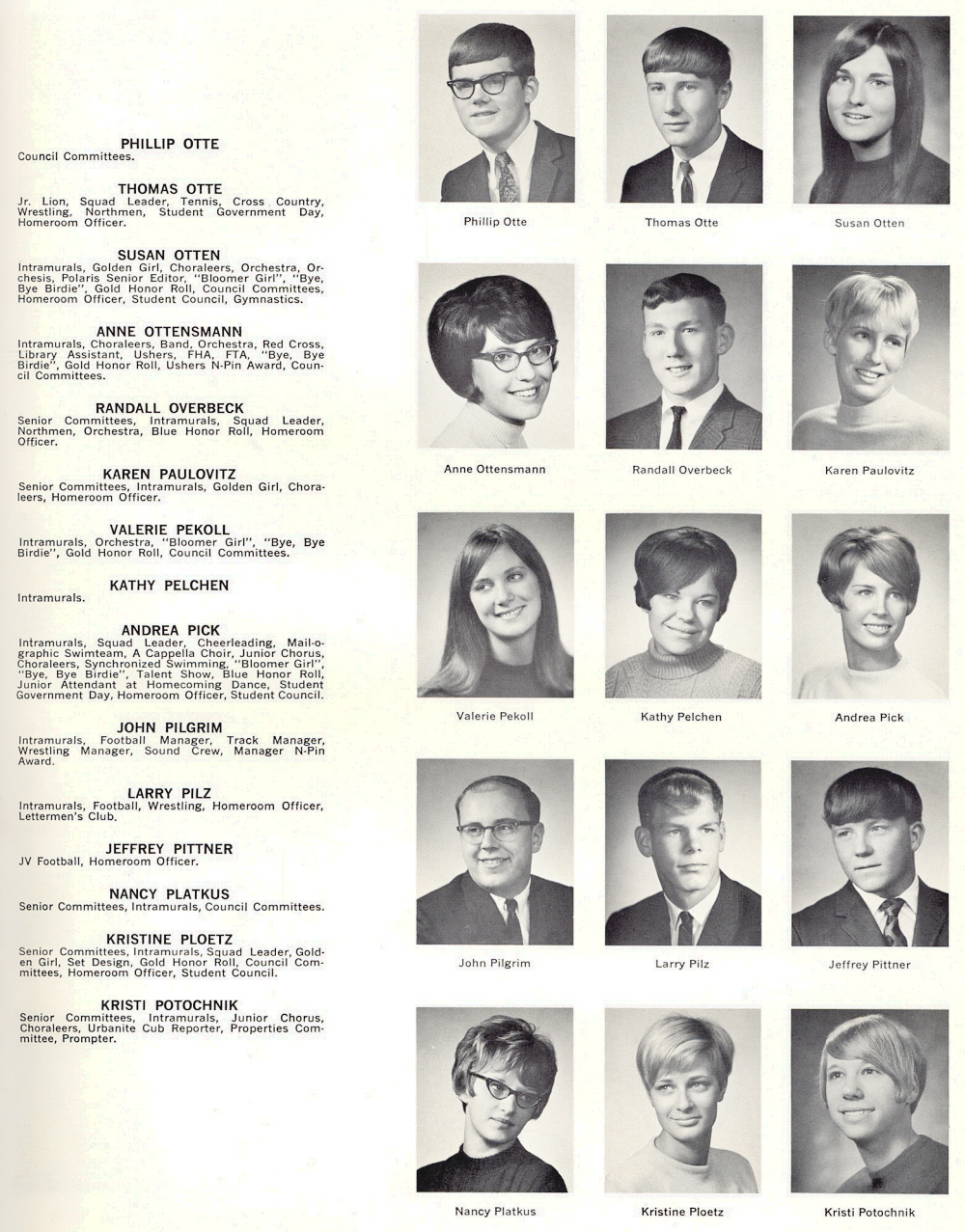 1968 Sheboygan North High School, Page 121: Phillip Otte, Thomas Otte, Susan Otten, Anne Ottensmann, Randall Overbeck, Karen Paulovitz, Valerie Pekoll, Kathy Pelchen, Andrea Pick, John Pilgrim, Larry Pilz, Jeffrey Pittner, Nancy Platkus, Kristine Ploetz, Kristi Potochnik.