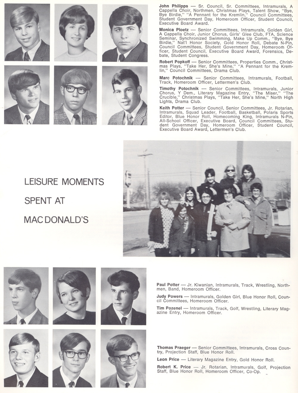 1969 Sheboygan North High School, Page 122: John Phillips, Monica Ploetz, Robert Popkoff, Marc Potochnik, Timothy Potochnik, Keith Potter, Paul Potter, Judy Powers, Tim Pozenel, Thomas Praeger, Leon Price, Robert K. Price.