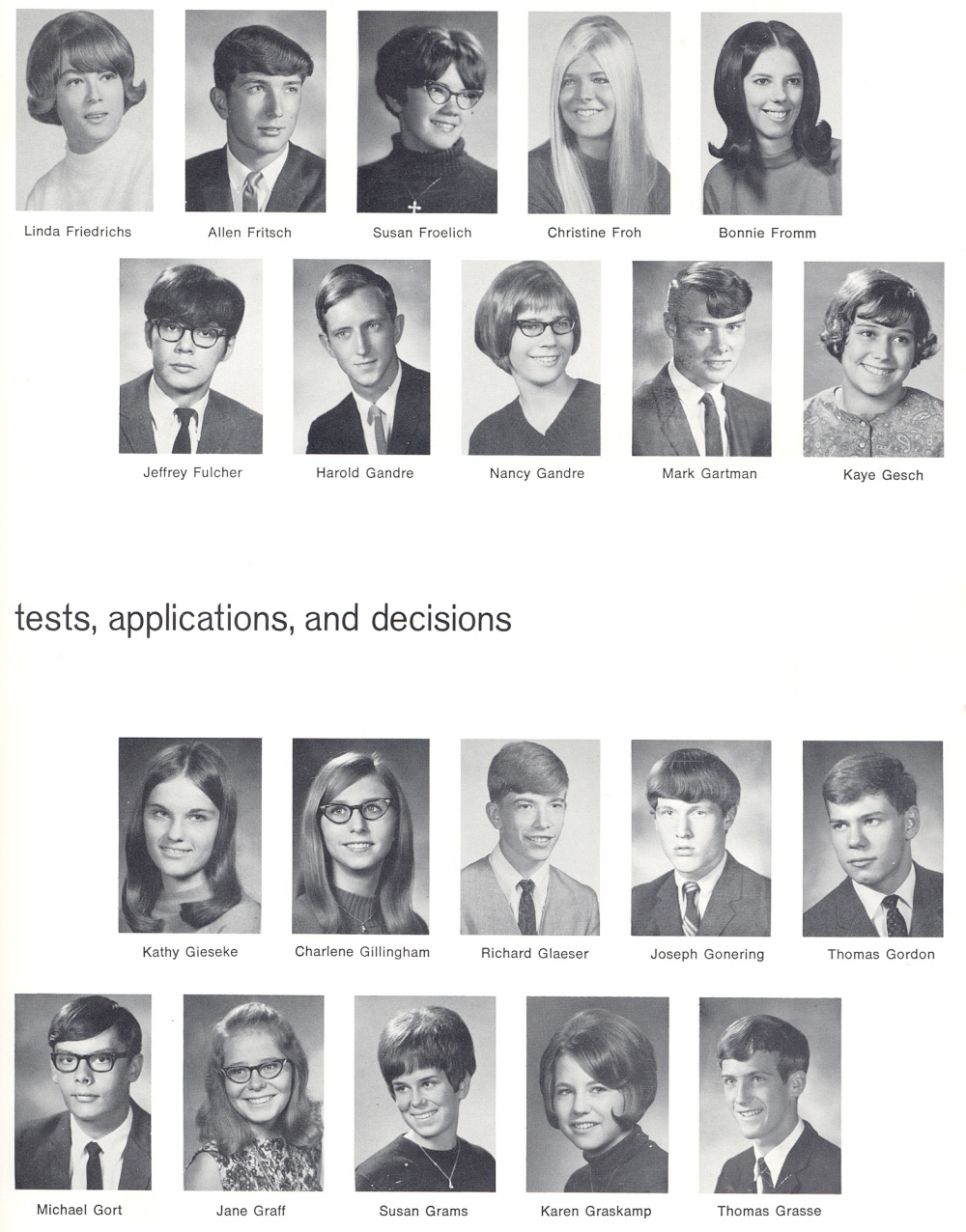 1969 Sheboygan South High School, Page 119: Linda Friedrichs, Allen Fritsch, Susan Froelich, Christine Froh, Bonnie Fromm, Jeffrey Fulcher, Harold Gandre, Nancy Gandre, Mark Gartman, Kaye Gesch, Kathy Gieseke, Charlene Gillingham, Richard Glaeser, Joseph Gonering, Thomas Gordon, Michael Gort, Jane Graff, Susan Grams, Karen Graskamp, Thomas Grasse.