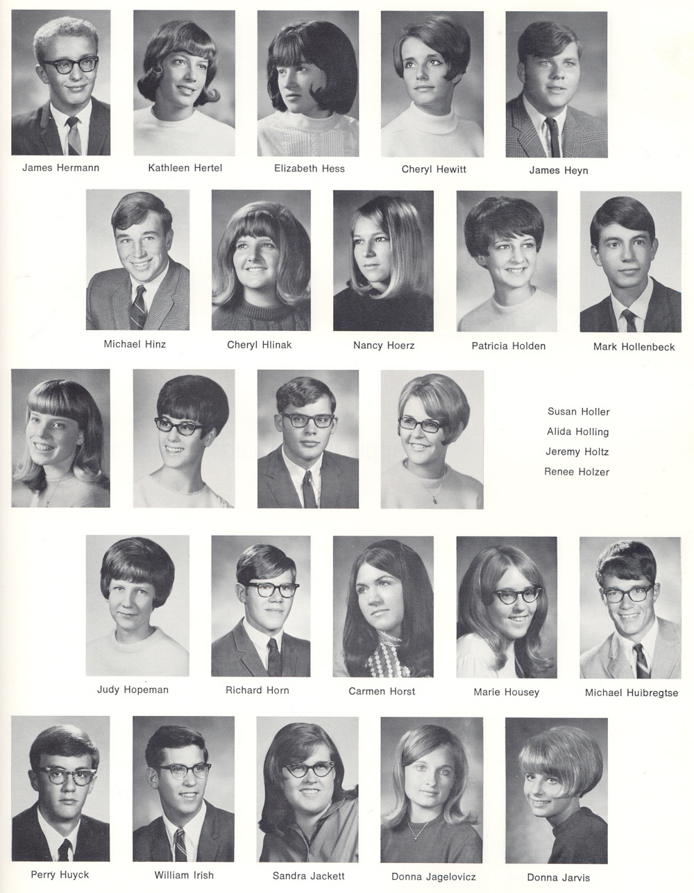 1969 Sheboygan South High School, Page 121: James Hermann, Kathleen Hertel, Elizabeth Hess, Cheryl Hewitt, James Heyn, Michael Hinz, Cheryl Hlinak, Nancy Hoerz, Patricia Holden, Mark Hollenbeck, Susan Holler, Alida Holling, Jeremy Holtz, Renee Holzer, Judy Hopeman, Richard Horn, Carmen Horst, Marie Housey, Michael Huibregtse, Perry Huyck, William Irish, Sandra Jackett, Donna Jagelovicz, Donna Jarvis.