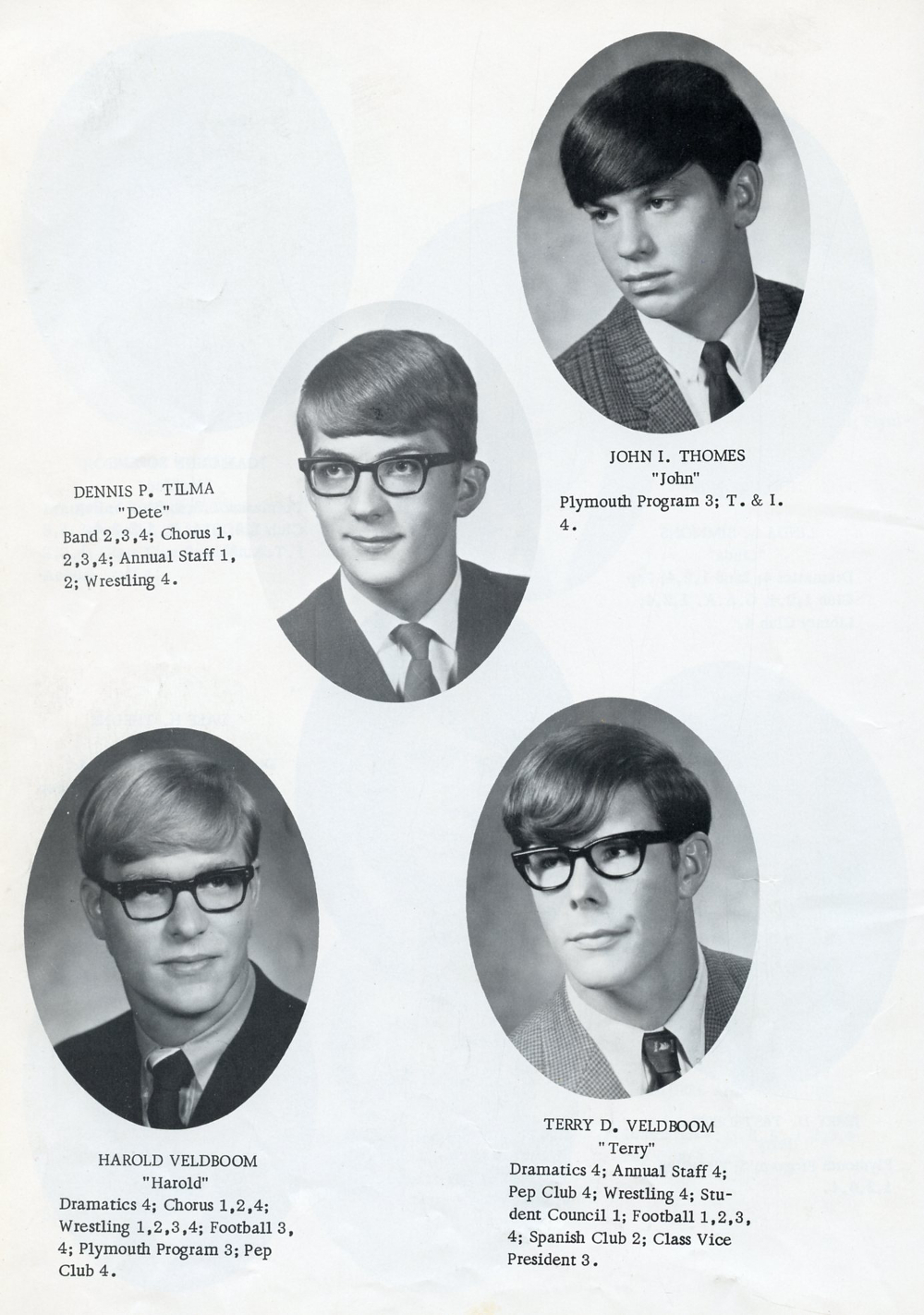 1970 Cedar Grove High School, Page 34: John I. Thomes, Dennis P. Tilma, Harold Veldboom, Terry D. Veldboom.