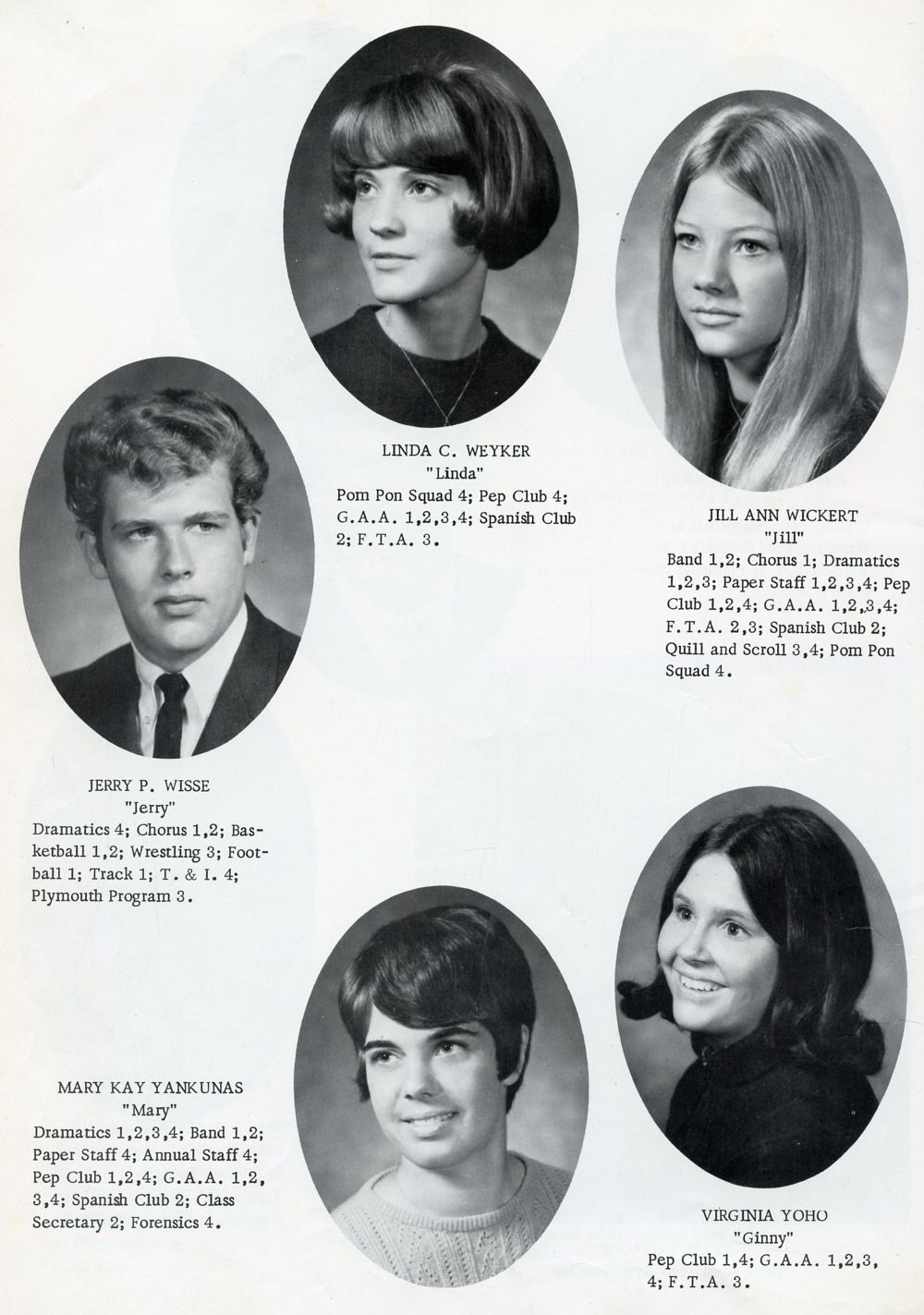 1970 Cedar Grove High School, Page 36: Linda C. Weyker, Jill Ann Wickert, Jerry P. Wisse, Mary Kay Yankunas, Virginia Yoho.