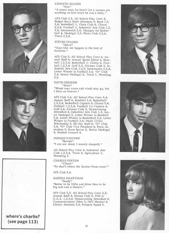 1970 Oostburg High School, Page 10: Kenneth Dulmes, Steven Dulmes, David Eernisse, Donald Faucher, Charles Fenton, Sandra Haartman.