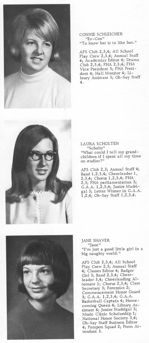 1970 Oostburg High School, Page 16: Connie Schleicher, Laura Scholten, Jane Shaver.