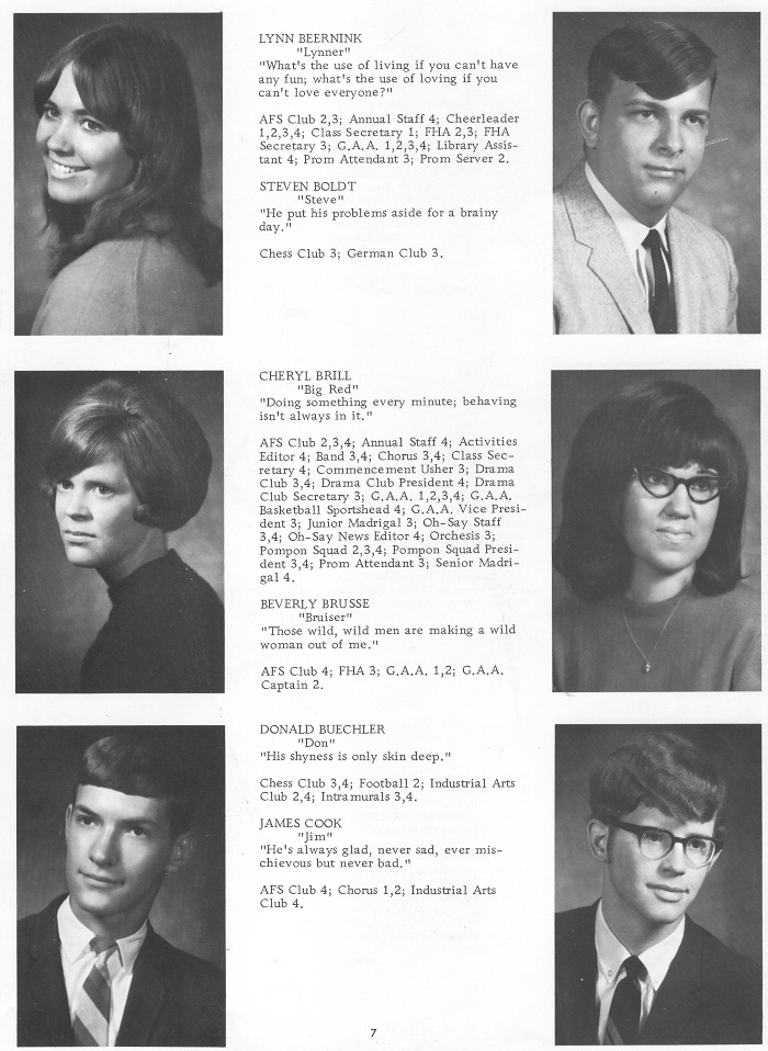 1970 Oostburg High School, Page 7: Lynn Beernink, Steven Boldt, Cheryl Brill, Beverly Brusse, Donald Buechler, James Cook.