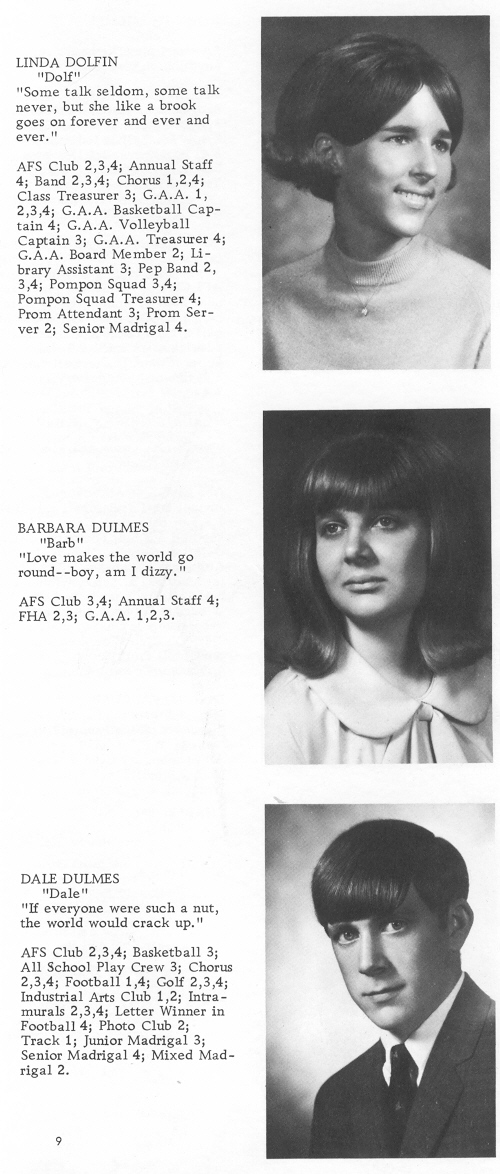 1970 Oostburg High School, Page 9: Linda Dolfin, Barbara Dulmes, Dale Dulmes.