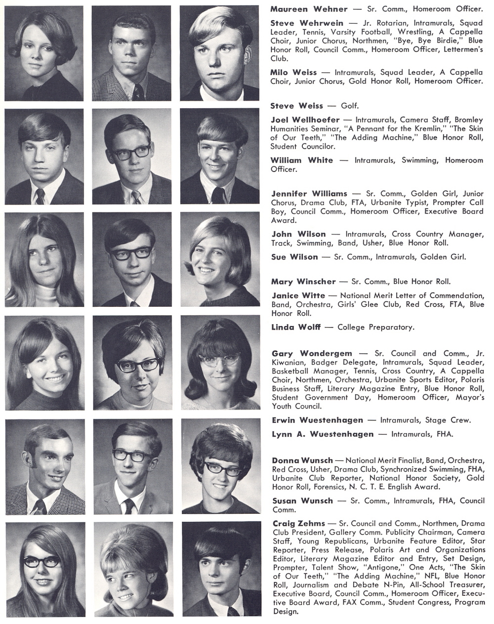 High School, Page 107 Maureen Wehner, Steve Wehrwein, Milo Weiss, Steve Weiss, Joel Wellhoefer, William White, Jennifer Williams, John Wilson, Sue Wilson, Mary Winscher, Janice Witte, Linda Wolff, Gary Wondergem, Erwin Wuestenhagen, Lynn A. Wuestenhagen, Donna Wunsch, Susan Wunsch, Craig Zehms.