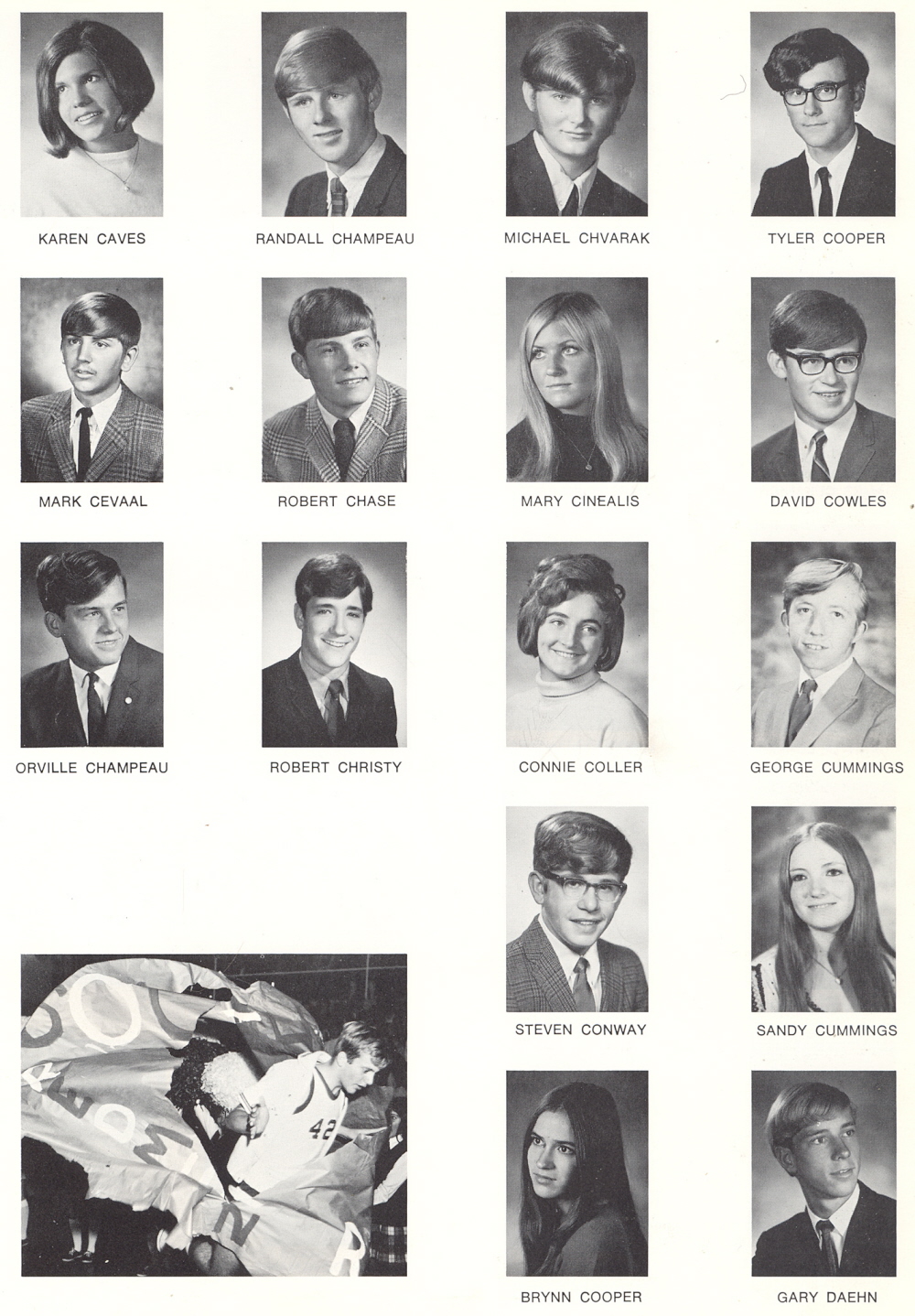 High School, Page 33: Karen Caves, Randall Champeau, Michael Chvarak, Tyler Cooper, Mark Cevaal, Robert Chase, Mary Cinealis, David Cowles, Orville Champeau, Robert Christy, Connie Coller, George Cummings, Steven Conway, Sandy Cummings, Brynn Cooper, Gary Daehn.