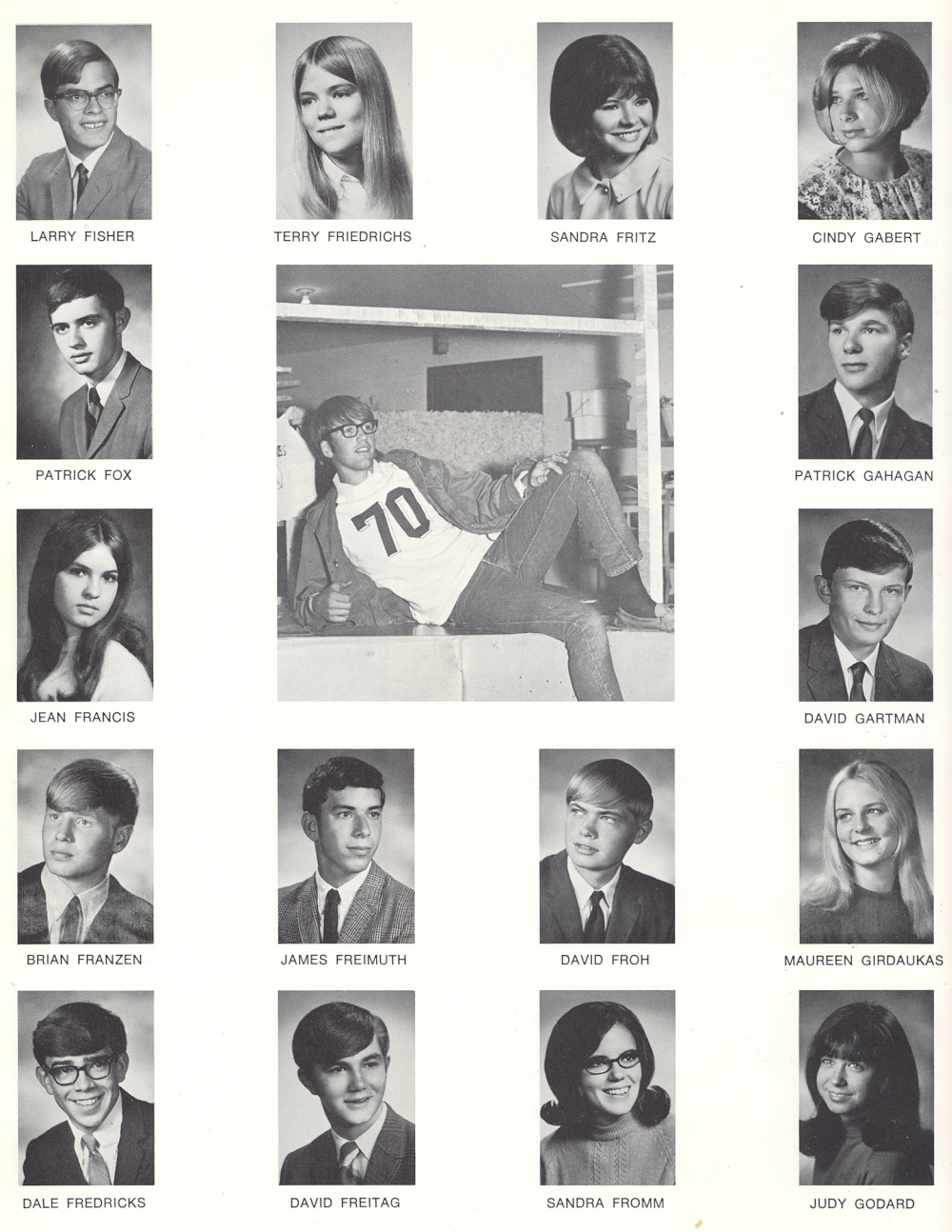 High School, Page 36: Larry Fisher, Patrick Fox, Jean Francis, Brian Franzen, Dale Fredricks, Terry Friedrichs, James Freimuth, David Freitag, Sandra Fritz, David Froh, Sandra Fromm, Cindy Gabert, Patrick Gahagan, David Gartman, Maureen Girdaukas, Judy Godard.