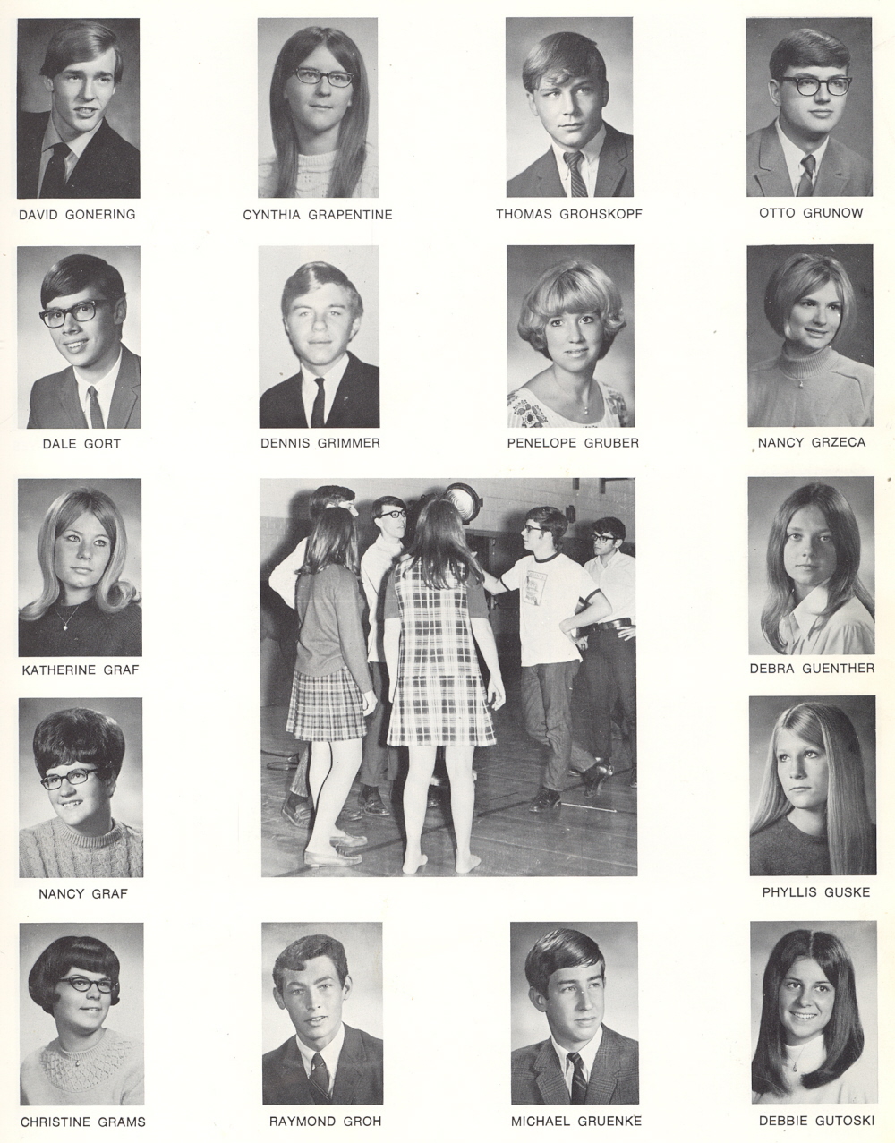 High School, Page 37: David Gonering, Dale Gord, Katherine Graf, Nancy Graf, Christine Grams, Cynthia Grapentine, Dennis Grimmer, Raymond Groh, Thomas Grohskopf, Penelope Gruber, Michael Gruenke, Otto Grunow, Nancy Grzeca, Debra Guenther, Phyllis Guske, Debbie Gutoski.