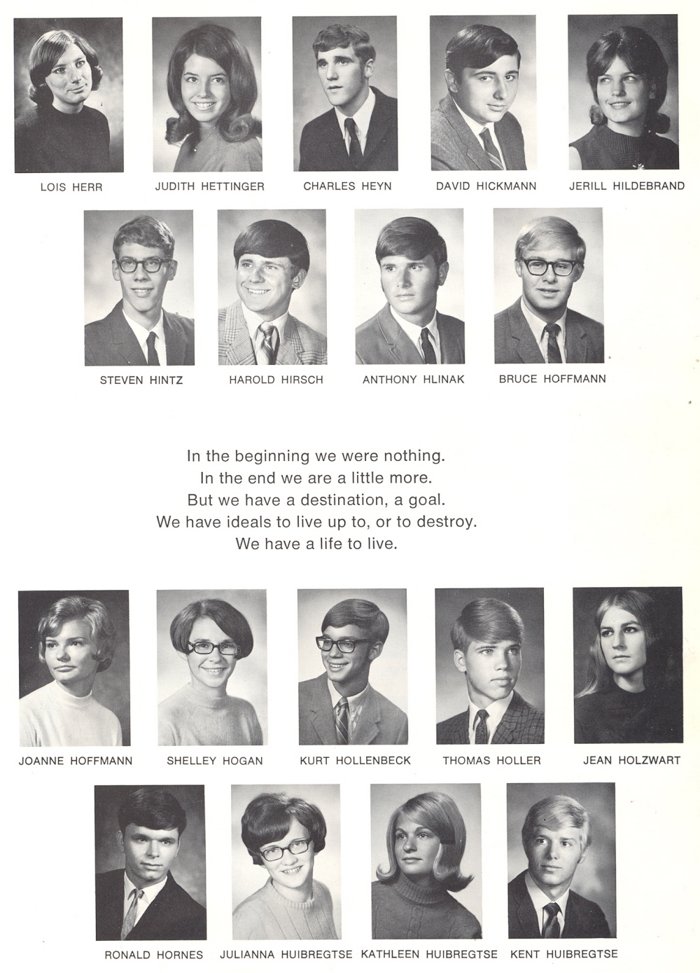 High School, Page 39: Lois Herr, Judith Hettinger, Charles Heyn, David Hickmann, Jerill Hildebrand, Steven Hintz, Harold Hirsch, Anthony Hlinak, Bruce Hoffmann, Joanne Hoffmann, Shelley Hogan, Kurt Hollenbeck, Thomas Holler, Jean Holzwart, Ronald Hornes, Julianna Huibregtse, Kathleen Huibregtse, Kent Huibregtse.