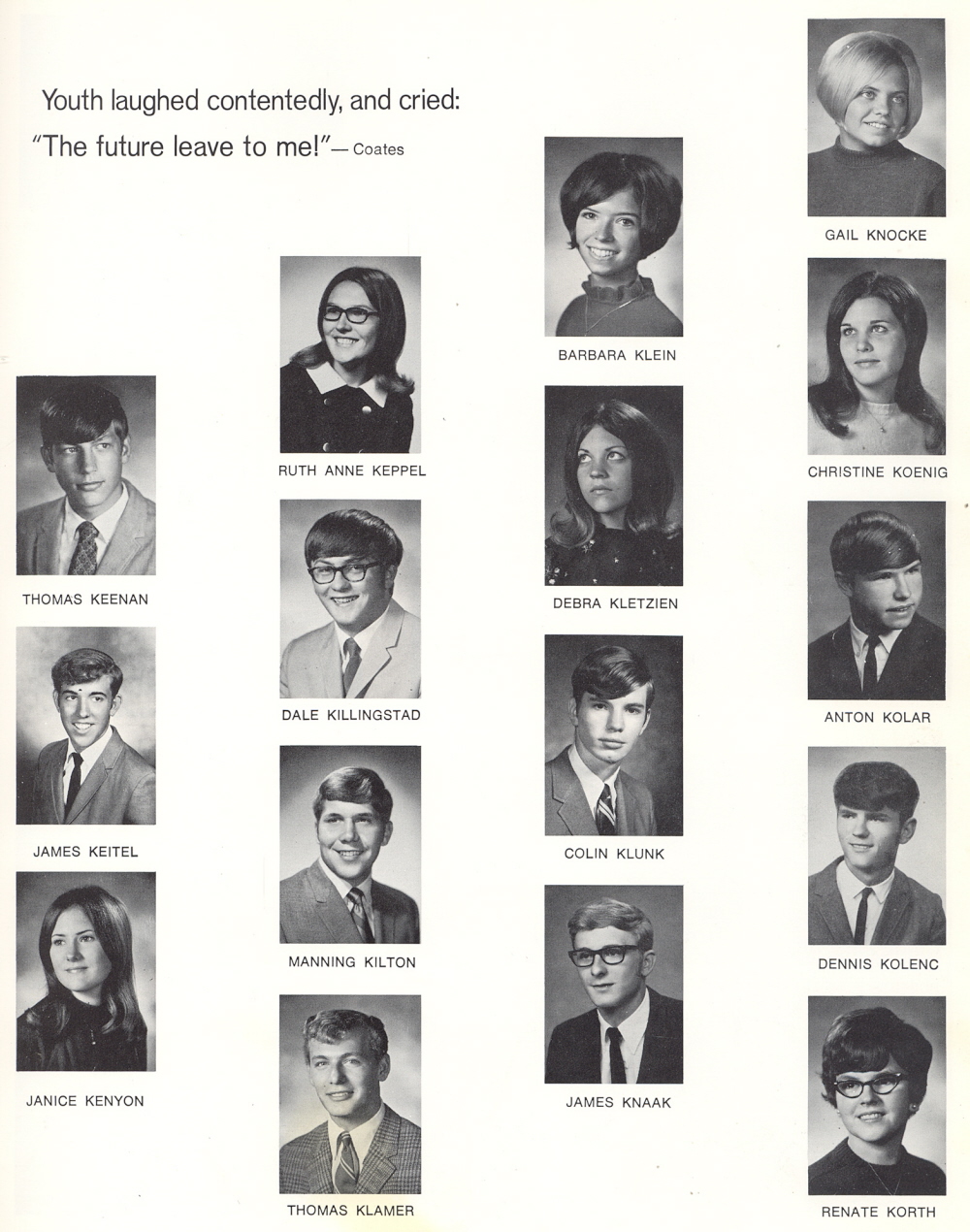 High School, Page 41: Thomas Keenan, James Keitel, Janice Jenyon, Ruth Anne Keppel, Dale Killingstad, Manning Kilton, Thomas Klamer, Barbara Klein, Debra Kletzien, Colin Klunk, James Knaak, Gail Knocke, Christine Koenig, Anton Kolar, Dennis Kolenc, Renate Korth.