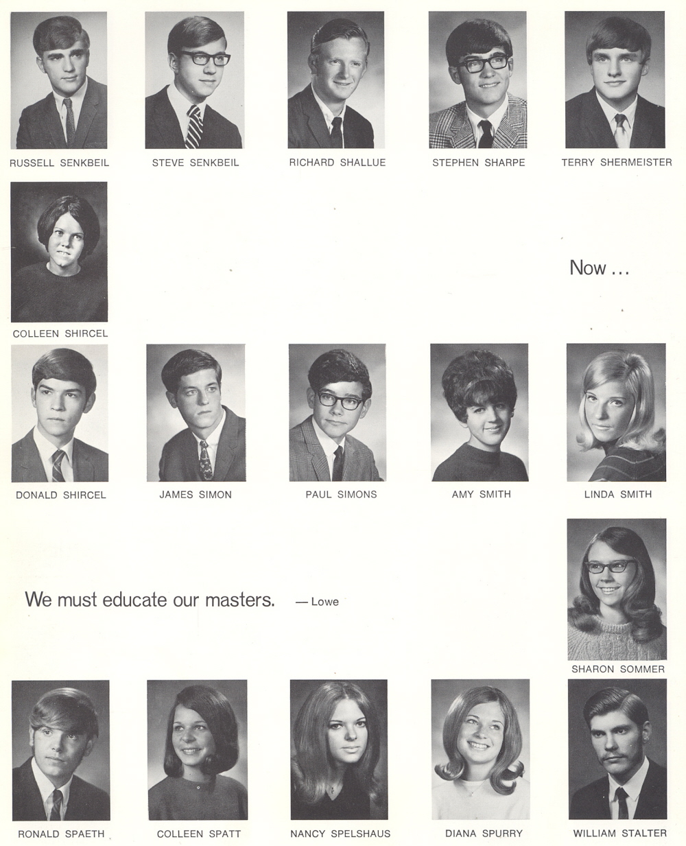 High School, Page 52: Russell Senkbeil, Steven Senkbeil, Richard Shallue, Stephen Sharpe, Terry Shermeister, Colleen Shircel, Donald Shurcel, James Simon, Paul Simons, Amy Smith, Linda Smith, Sharon Sommer, Ronald Spaeth, Colleen Spatt, Mancy Spelshaus, Diana Spurry, William Stalter.