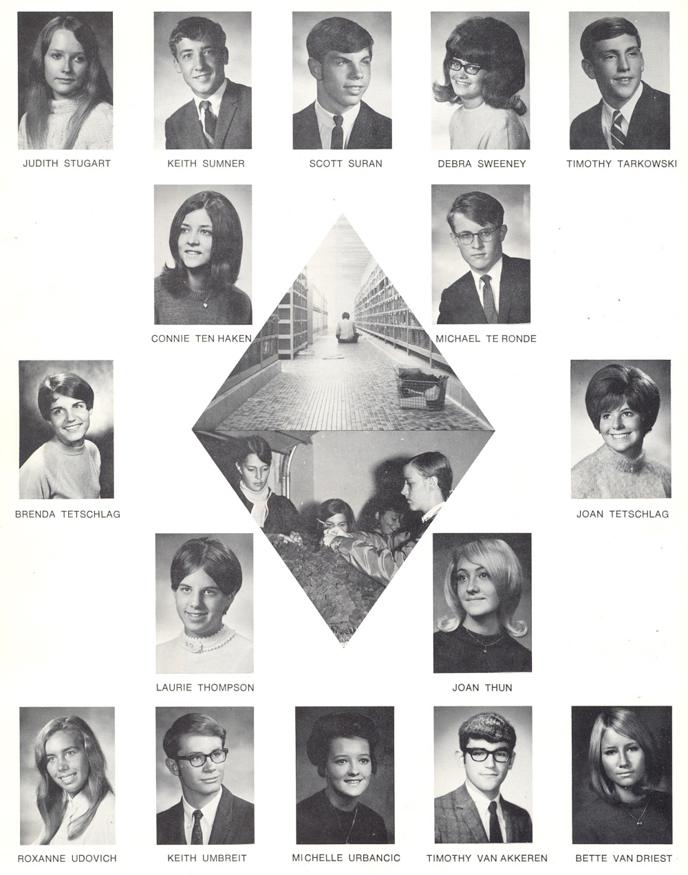 High School, Page 54: Judith Stugart, Keith Sumner, Scott Suran, Debra Sweeney, Timothy Tarkowski, Connie Ten Haken, Michael Te Ronde, Brenda Tetschlag, Joan Tetschlag, Laurie Thompson, Joan Thun, Roxanne Udovich, Keith Umbreit, Michelle Urbancic, Timothy Van Akkeren, Bette Van Driest.