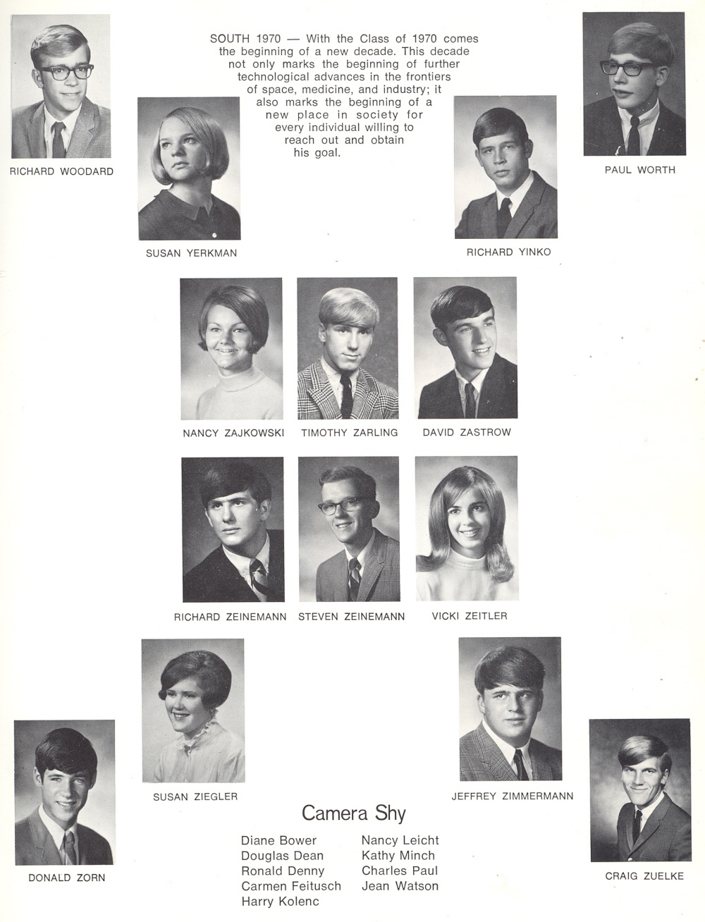 High School, Page 57: Richard Woodard, Paul Worth, Susan Yerkman, Richard Yinko, Nancy Zajkowski, Tmothy Zarling, David Zastrow, Richard Zeinemann, Steven Zeinemann, Vicki Zeitler, Susan Ziegler, Jeffrey Zimmermann, Donald Zorn, Craig Zuelke, Diane Bower, Douglas Dean, Ronald Denny, Carmen Feitusch, Harry Kolenc, Nancy Leicht, Kathy Minch, Charles Paul, Jean Watson.