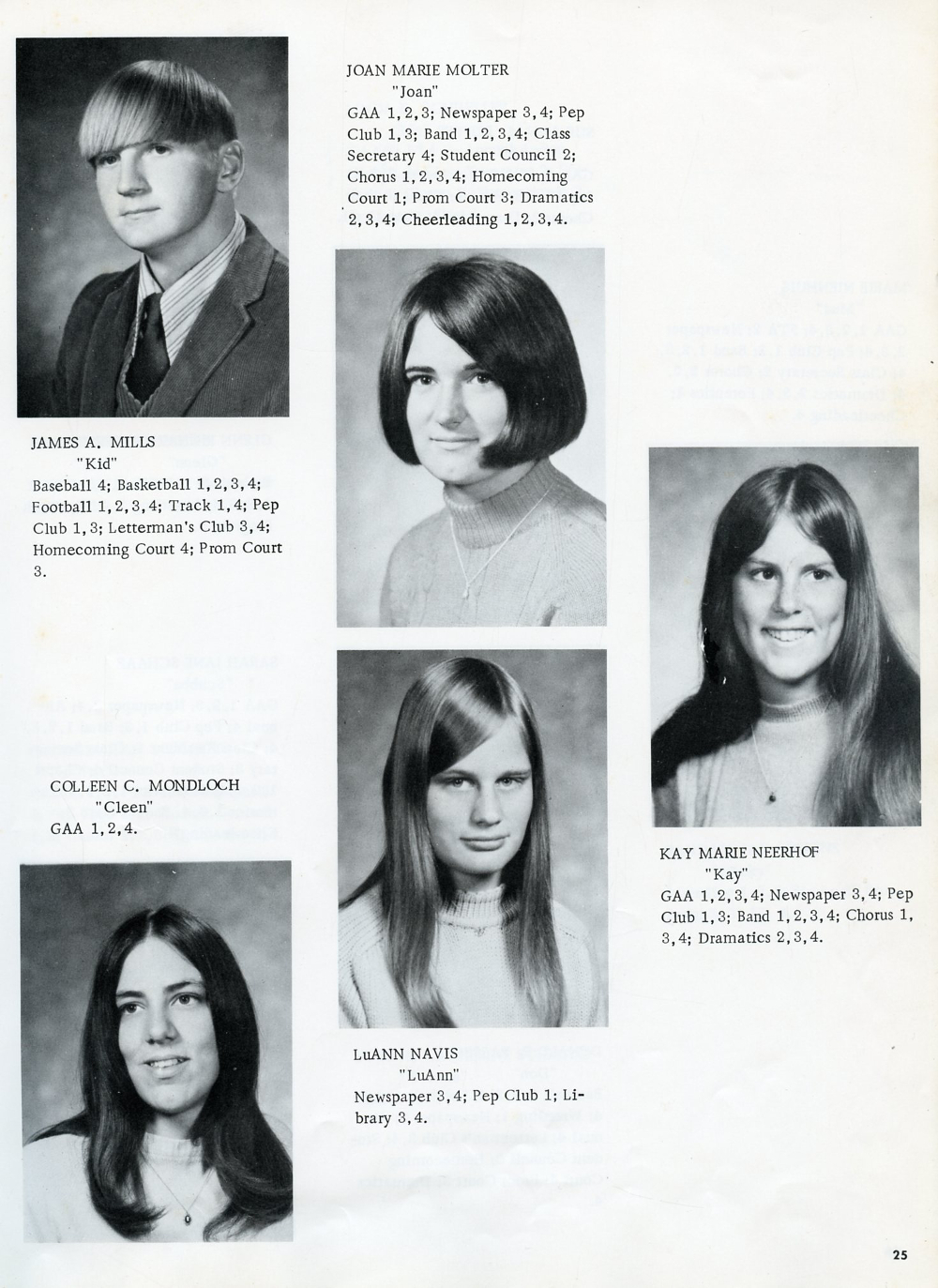 1971 Cedar Grove High School, Page 25: James A. Mills, Joan Marie Molter, Colleen C. Mondloch, LuAnn Navis, Kay Marie Neerhof.