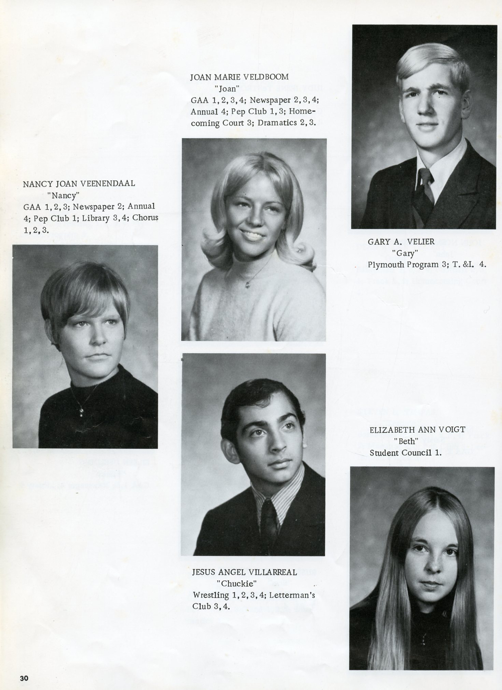 1971 Cedar Grove High School, Page 30: Nancy Joan Veenendaal, Joan Marie Veldboom, Gary A. Velier, Jesus Angel Villarreal, Elizabeth Ann Voigt.
