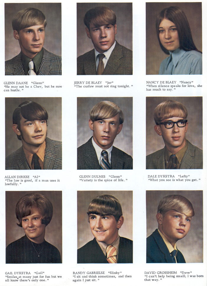 1971 Oostburg High School, Page 19: Glenn Daane, Jerry De Blaey, Nancy De Blaey, Allan Dirkse, Glenn Dulmes, Dale Dykstra, Gail Dykstra, Randy Gabrielse, David Grossheim.