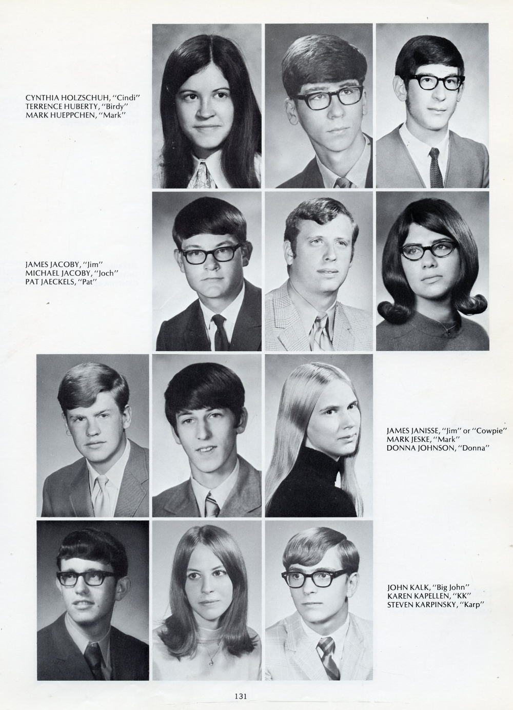 1971 Plymouth High School, Page 131: Cynthia Holzschuh, Terrence Huberty, Mark Hueppchen, James Jacoby, Michael Jacoby, Pat Jaeckels, James Janisse, Mark Jeske, Donna Johnson, John Kalk, Karen Kapellen, Steven Karpinsky.