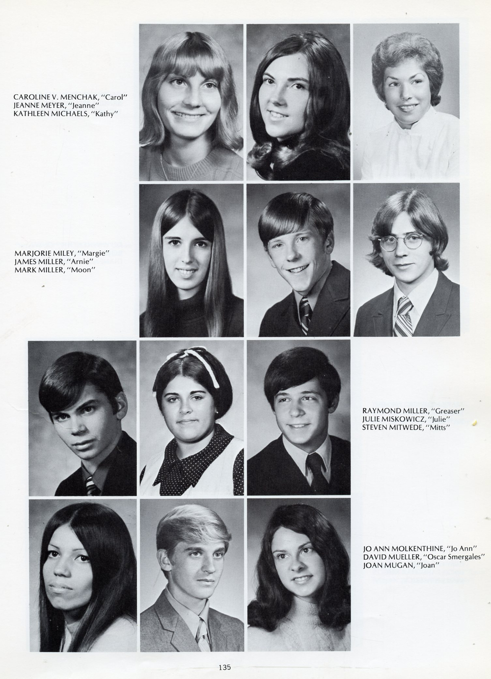 1971 Plymouth High School, Page 135: Caroline V. Menchak, Jeanne Meyer, Kathleen Michaels, Marjorie Miley, James Miller, Mark Miller, Raymond Miller, Julie Miskowicz, Steven Mitwede, Jo Ann Molkenthine, David Mueller, Joan Mugan.