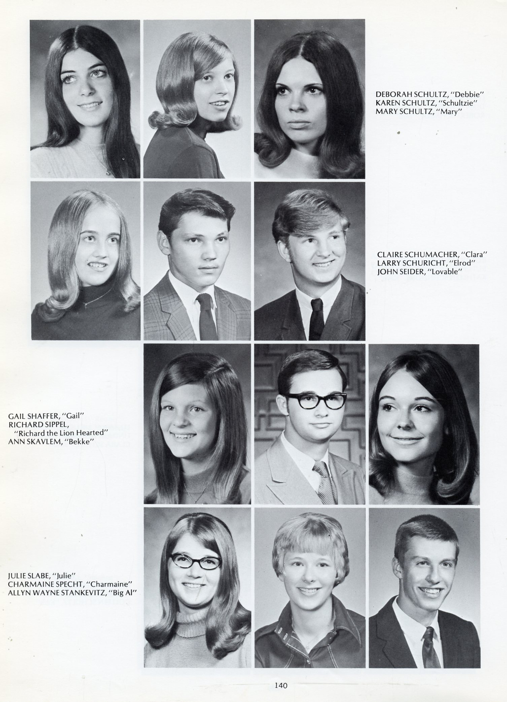 1971 Plymouth High School, Page 140: Deborah Schultz, Karen Schultz, Mary Schultz, Claire Schumacher, Larry Schuricht, John Seider, Gail Shaffer, Richard Sippel, Ann Skavlem, Julie Slabe, Charmaine Specht, Allyn Wayne Stankevitz.