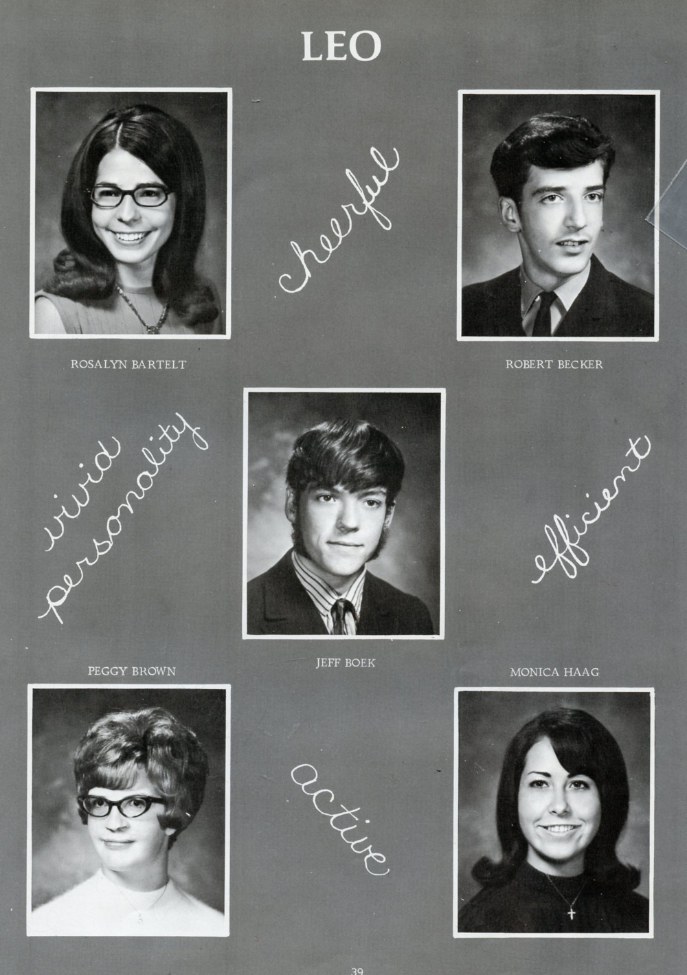 1971 Random Lake High School Yearbook Page 39: Rosalyn Bartelt, Robert Becker, Jeff Boek, Peggy Brown, Monica Haag.