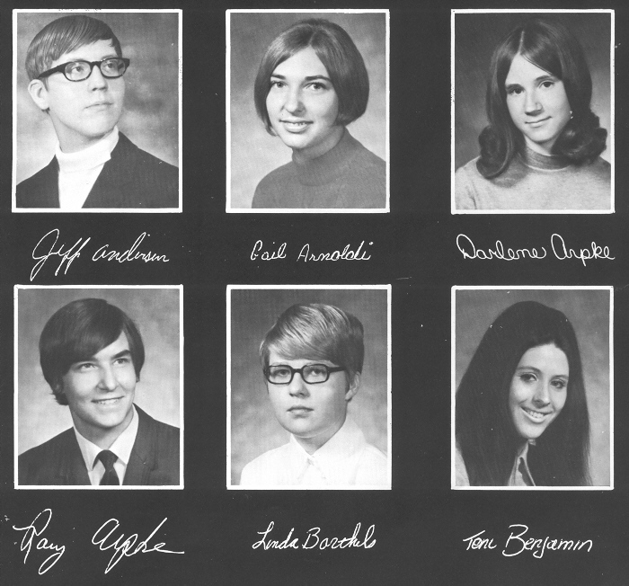 1971 Sheboygan Falls High School, Page 117: Jeff Anderson, Gail Arnoldi, Darlene Arpke, Ray Arpke, Linda Barthels, Toni Benjamin.