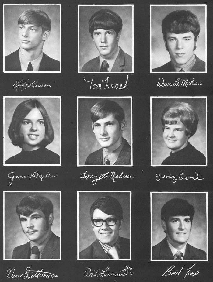 1971 Sheboygan Falls High School, Page 125: Michael Larson, Tom Leach, David Le Mahieu, Jane Le Mahieu, Lynn Lemahieu, Terry Le Mahieu, Judy Lemke, David Littmann, Philip Loomis, Bradley Loose.