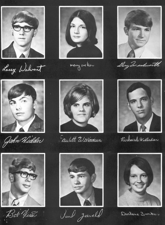 1971 Sheboygan Falls High School, Page 133: Larry Walvort, Mary Weber, Gary Weckwerth, John Widder, Paulette Willadsen, Richard Willadsen, Robert Wisse, Paul Zeeveld, Darlene Zunker.