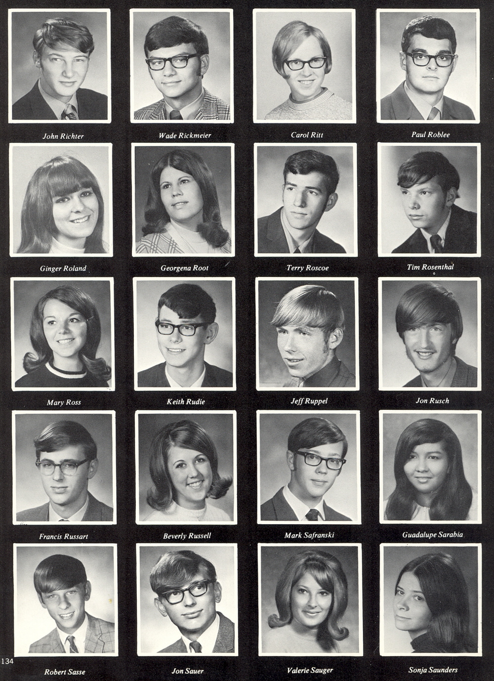 High School, Pages 134 & 144: John Richter, Wade Rickmeier, Carol Ritt, Paul Roblee, Ginger Roland, Georgena Root, Terry Roscoe, Tim Rosenthal, Mary Ross, Keith Rudie, Jeff Ruppel, Jon Rusch, Francis Russart, Beverly Russell, Mark Safranski, Guadalupe Sarabia, Robert Sasse, Jon Sauer, Valerie Sauger, Sonja Saunders.