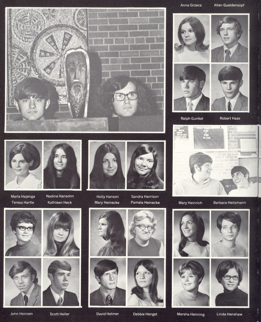 High School, Page 16: Anne Grzeca, Allen Gueldensopf, Ralph Gunkel, Robert Haas, Marla Hajenga, Nadine Hansohn, Holly Hanson, Sandra Harrison, Teresa Hartle, Kathleen Heck, Mary Heinecke, Pamela Heinecke, Mary Heinrich, Barbara Heitzmann, John Heinzen, Scott Heller, David Helmer, Debbie Hengst, Marsha Henning, Linda Henshaw.
