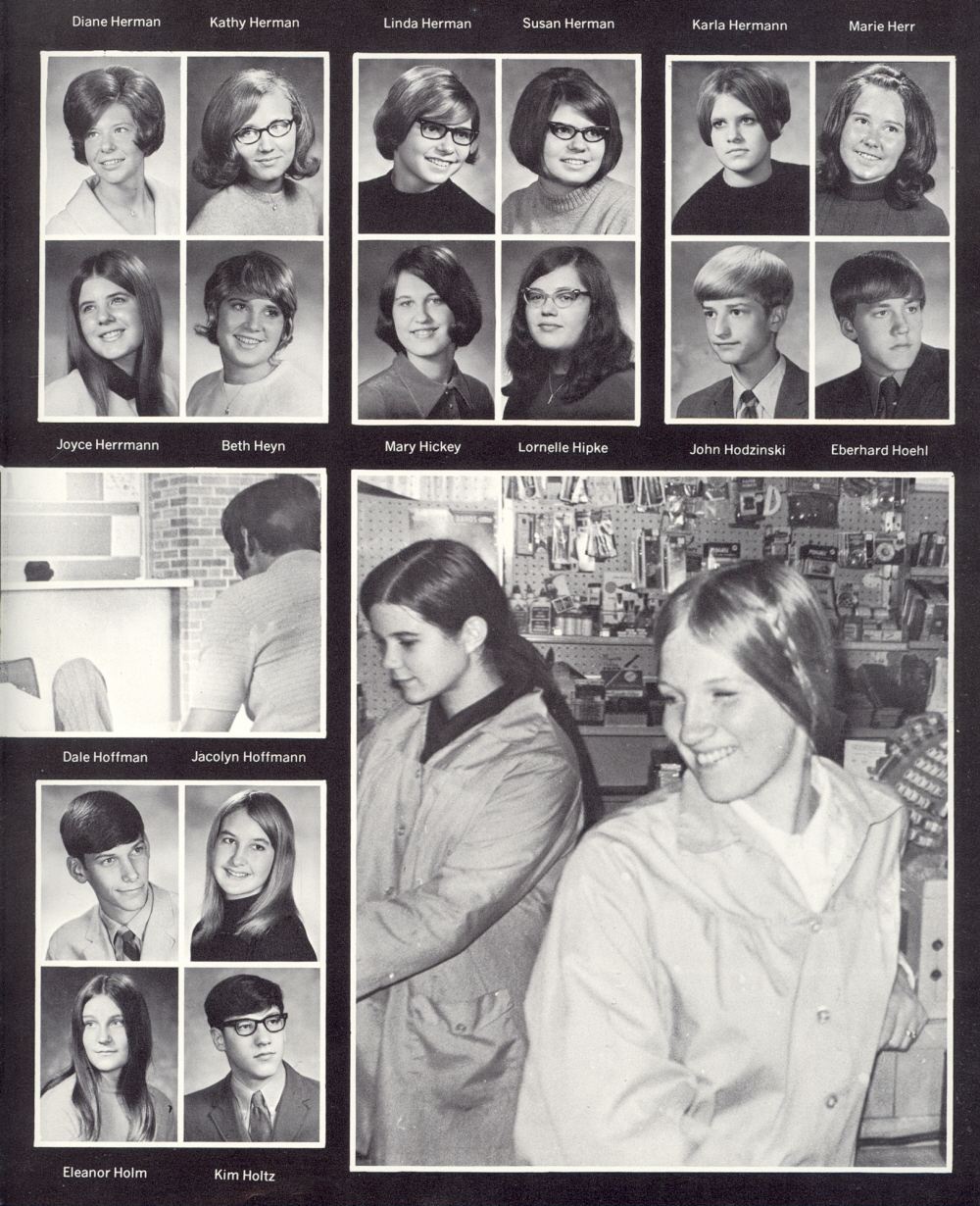 High School, Page 17: Diane Herman, Kathy Herman, Linda Herman, Susan Herman, Karla Hermann, Marie Herr, Joyce Herrmann, Beth Heyn, Mary Hickey, Lornelle Hipke, John Hodzinski, Eberhard Hoehl, Dale Hoffman, Jacolyn Hoffmann, Eleanor Holm, Kim Holtz.